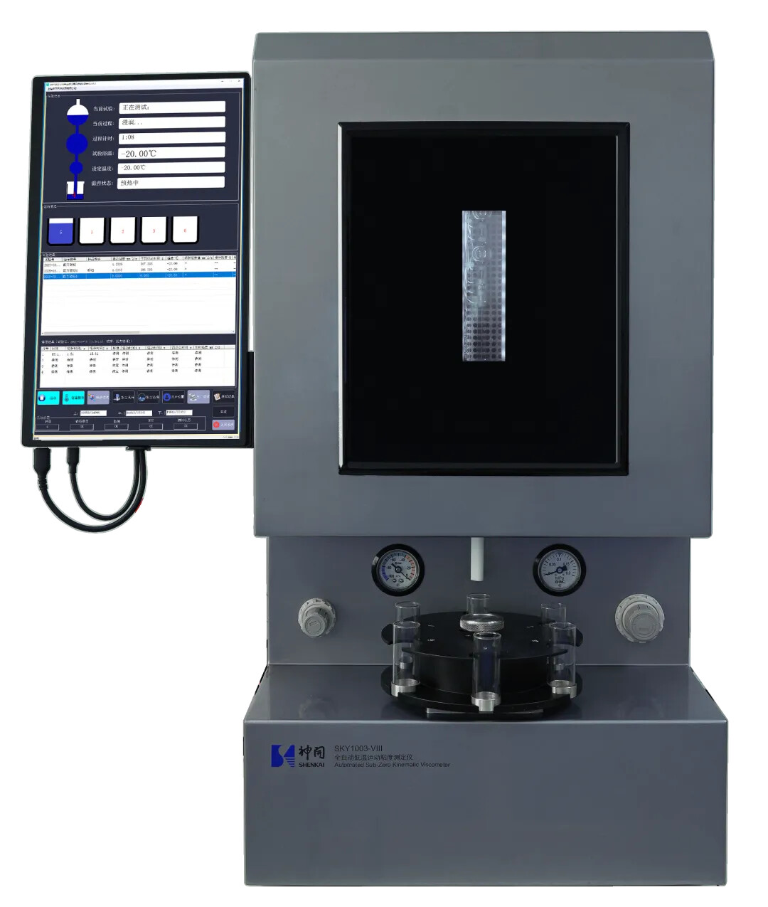Испытание низкотемпературных характеристик авиационного топлива является основным техническим показателем контроля качества авиационного топлива, важным техническим средством поддержания эффективной работы системы авиационного топлива, избежания риска замерзания или засорения топлива и обеспечения безопасности полета, играет незаменимую роль в повышении адаптивности авиационного топлива к среде и поддержке бесперебойного выполнения задач авиаперевозок в разнообразных климатических условиях. Автоматический измеритель температуры замерзания авиационного топлива и полностью автоматический измеритель низкотемпературной кинематической вязкости, разработанные и произведенные инструментами компании"Шенкай", имеют высокую степень автоматизации, гибкую и простую эксплуатацию и являются идеальным выбором для большинства лабораторий анализа.